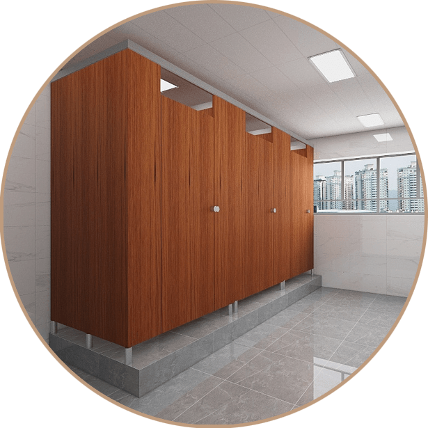 擁有10年以上設計經驗的專職設計團隊與安裝團隊,掌握凹凸造型設計技術,擁有多項產品專利,累計提供1230款衛生間隔斷款式;